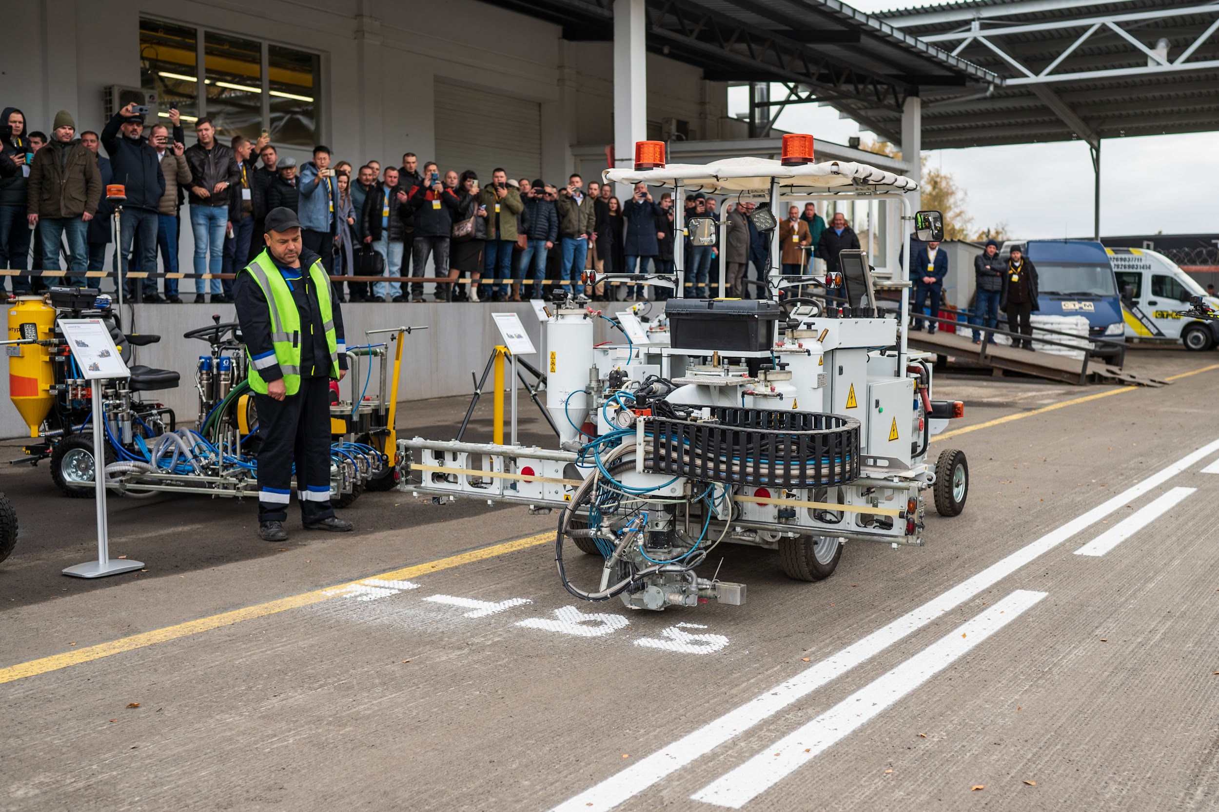 Особый интерес у аудитории вызвали машины непрерывного действия "СТиМ МАРК 4К" и "СТиМ МАРК 10Т». Впечатлила гостей и система повторения разметки ЛИС (лазерная интеллектуальная система). Финальной точкой показа стал «Стимограф» - устройство для автоматического нанесения дорожных знаков и других сложных элементов разметки.