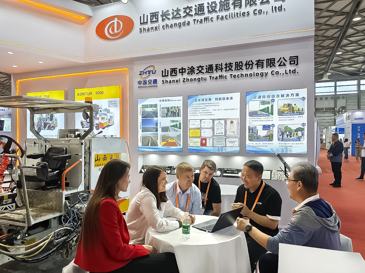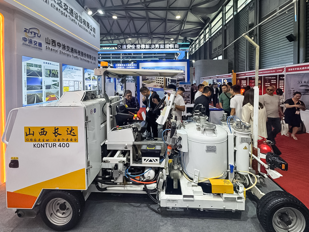 На стенде была представлена модульная машина «Контур 400Х». Группа компаний «СТиМ» выпускает все виды материалов для нанесения дорожной разметки: краски, термопластики, пластики холодного нанесения и стеклошарики. Производственные мощности группы позволяют за 2 дня обеспечить годовую потребность материалов для города - миллионника.