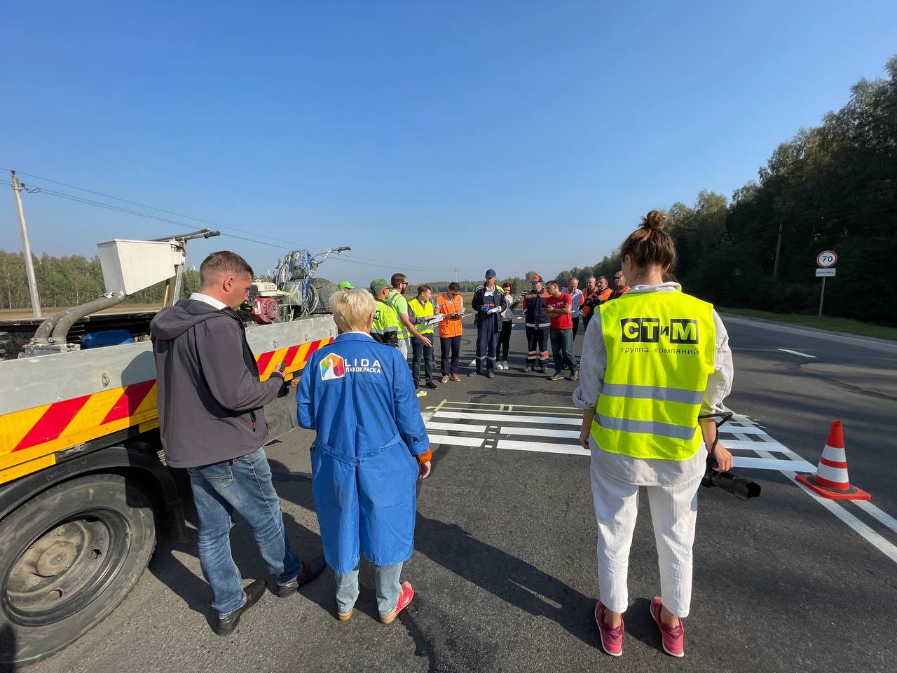 В конце августа «СТиМ» совместно с «БелдорНИИ» начал экспериментальные работы по нанесению разметки на дорогах Беларуси. |