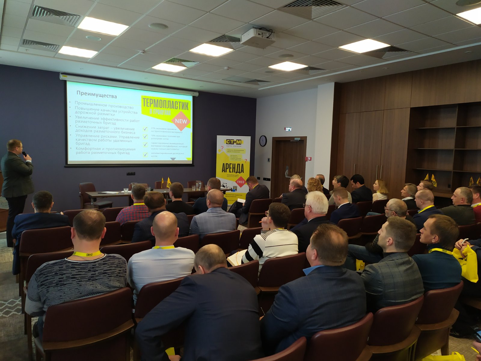 Мы презентуем пакет предложений для своих партнеров, которые позволят сделать свой бизнес эффективней и прибыльней. Основной темой мероприятия стала презентация нового инновационного продукта для рынка дорожной разметки - термопластик в гранулах. Материал имеет ряд преимуществ на ряду с существующими сейчас видами. Материал гарантировано вымешан и позволяет увеличит эффективность работы разметочной бригады до 32%.