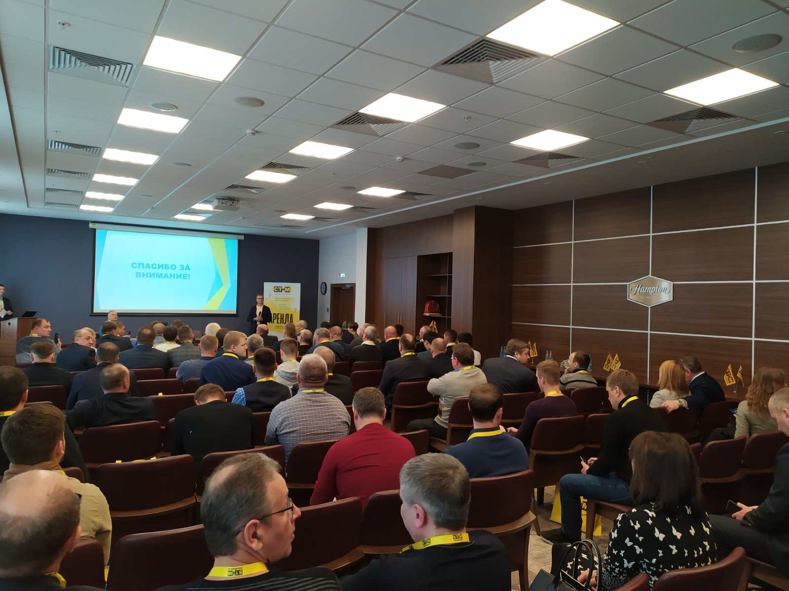 Зал готов принять гостей, которые ежегодно приезжают на этот практический семинар, чтобы поделиться опытом, увидеть новые разработки компании в машинах дорожной разметки, послушать про новые IT решения для дорожного бизнеса.