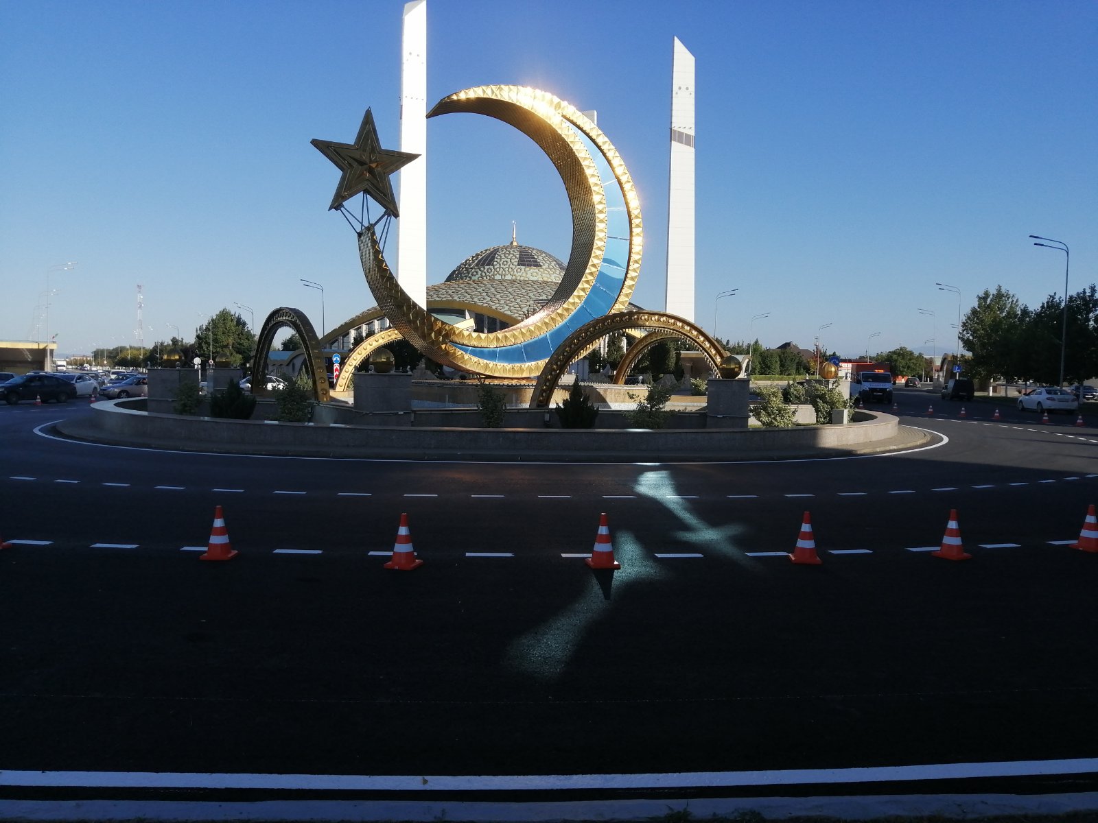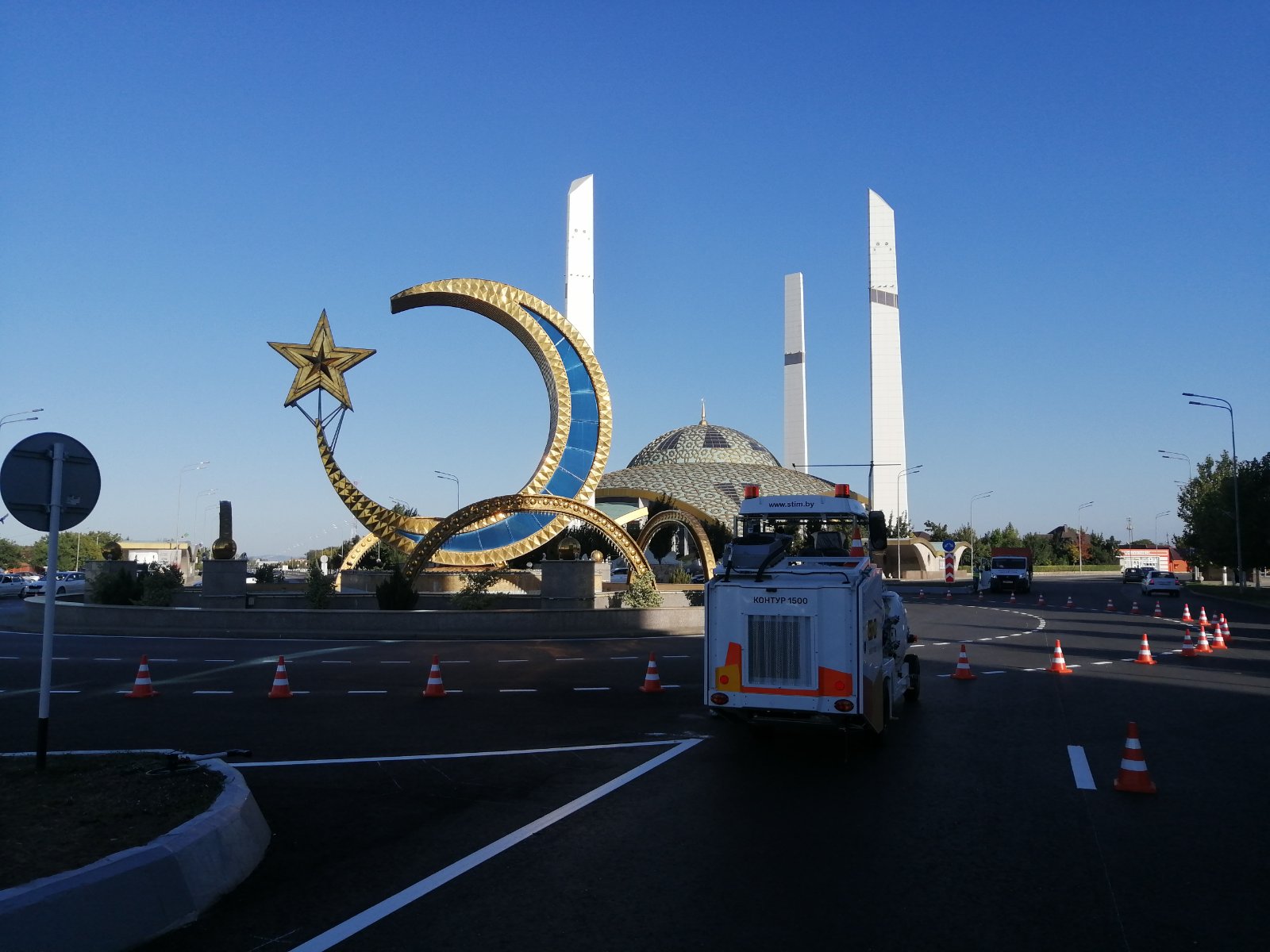 Машина дорожной разметки СТиМ Контур 1500 - наносит холодный пластик в Чечне, на улицах города Аргун
